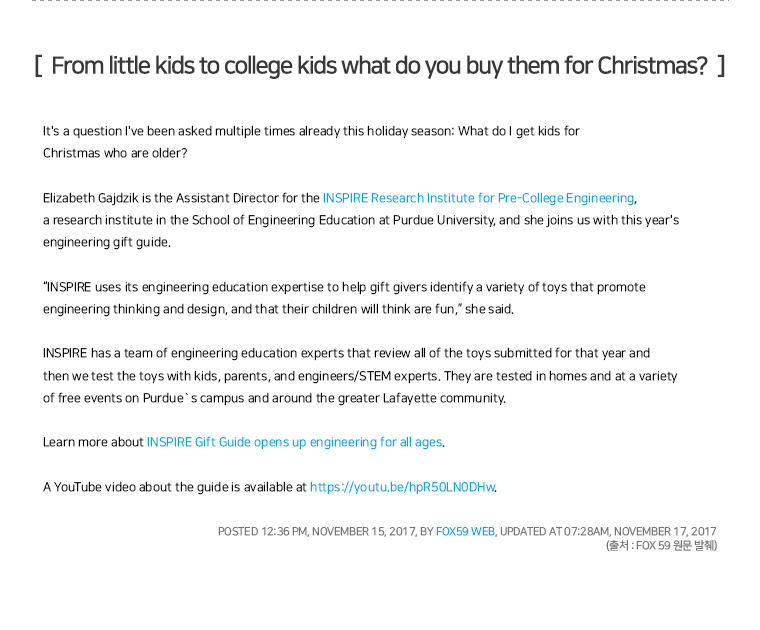 글로벌 뉴스 채널 FOX의 ‘PURDUE 공대 선물 리스트’에 로킷 스마트, 코드론 선정